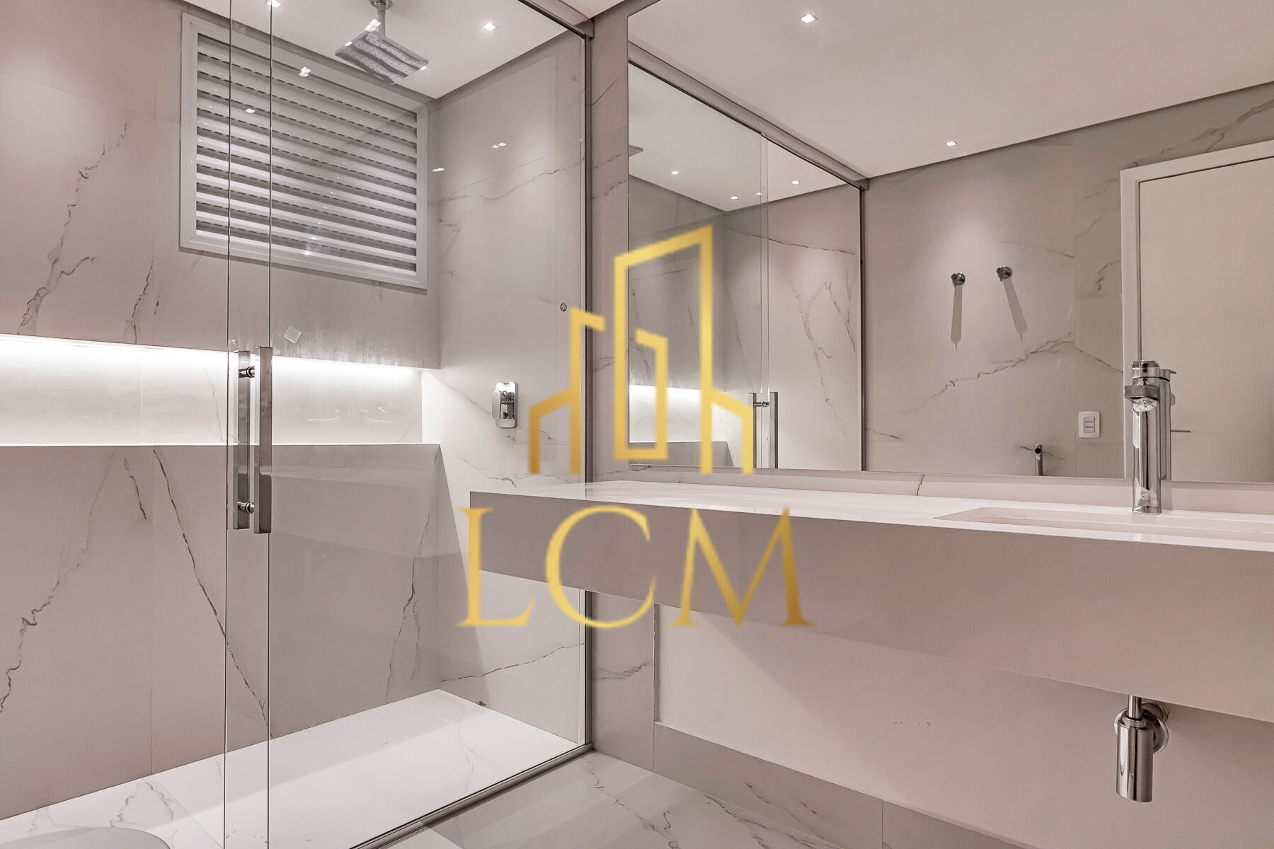 A área íntima conta com três suítes espaçosas, todas com excelente iluminação e ventilação natural. Os banheiros são equipados com louças e bacias Kohler, garantindo um acabamento refinado. O apartamento também dispõe de infraestrutura completa para ar-condicionado nos quartos e na sala, além de um lavabo para maior comodidade.